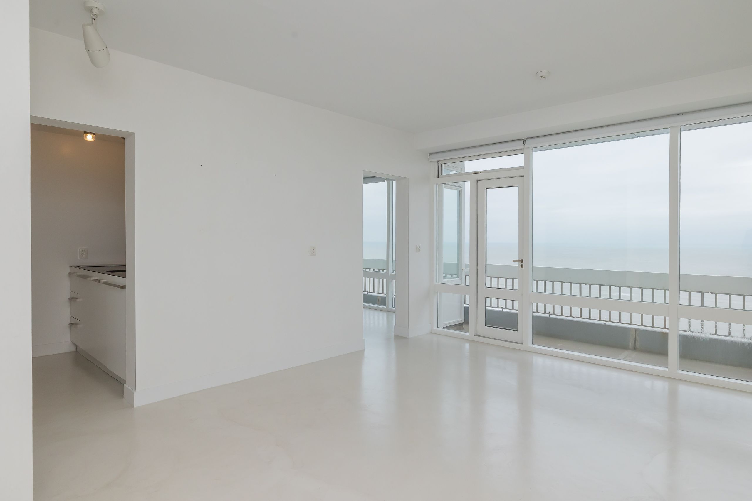 WOW, wat een uitzicht, dit is meer dan uniek te noemen! Op de 16e verdieping gelegen strak afgewerkt 2 kamer appartement met een zonnig balkon pal op het westen en eigen berging op de gang. Het voelt hier alsof je boven de kustlijn zweeft; een uitzicht dat nooit verveelt en met de seizoenen en het licht telkens verandert. De gehele woning is voorzien van een lichtkleurige betonvloer die strak is doorgelegd in alle ruimtes. Dit zorgt voor rust, een moderne uitstraling én een ruimtelijk effect.