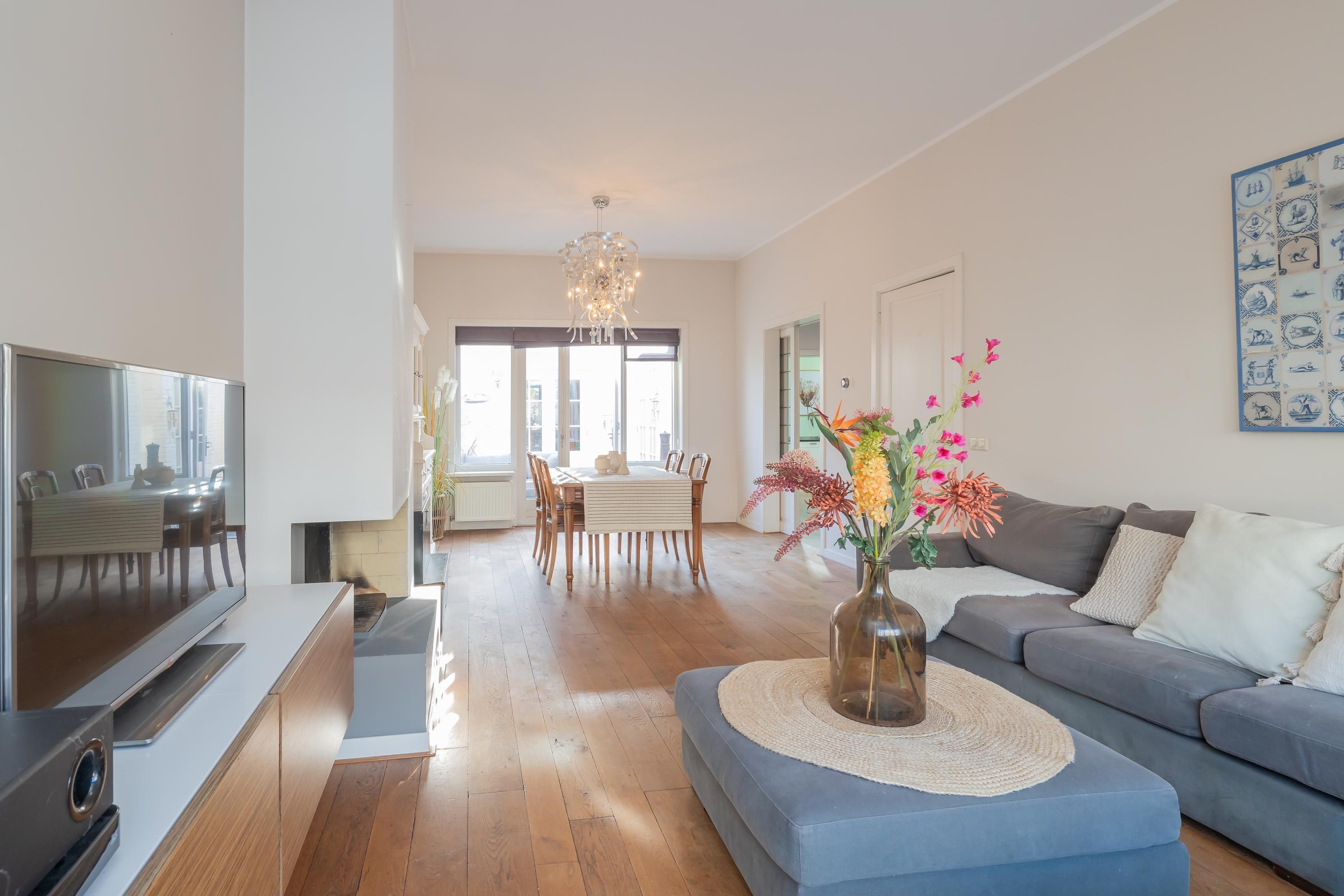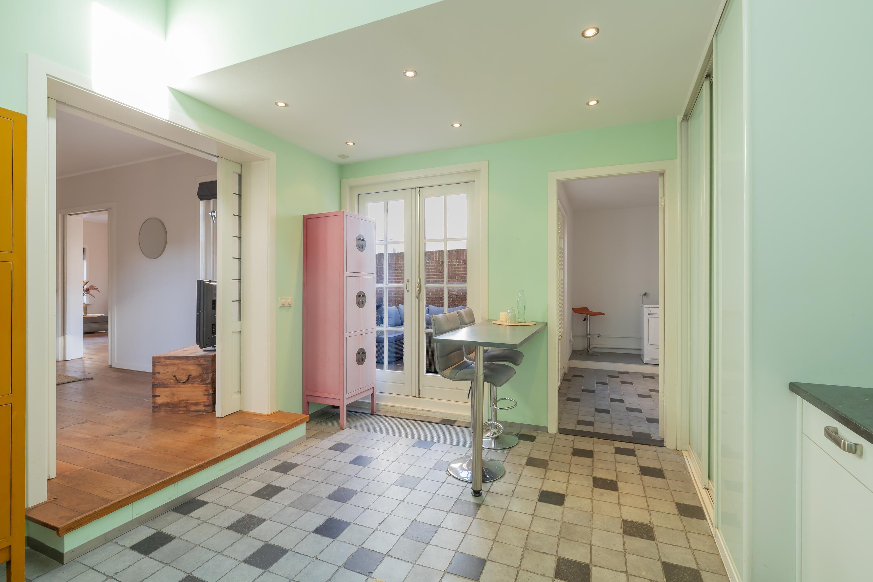 ** English below ** Deze charmante, vrijstaande 20-er jaren woning zal je aangenaam verassen door de zeer royale parterre, de warme sfeer en de bewaard gebleven authentieke details. De parterre bestaat uit een ruime woonkamer met haard, openslaande deuren naar de omsloten patio en een multifunctionele zijkamer welke nu in gebruik is als TV-kamer. Er is een geweldige, royale woonkeuken met zeer hoog plafond en openslaande deuren naar de patio. Grenzend aan de keuken is er nog een ruime bijkeuken/waskamer, ook met openslaande deuren naar de patio op het zuidoosten gelegen. De voortuin is op het noordwesten gericht. De 1e verdieping bestaat uit...